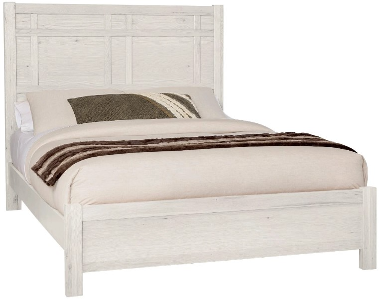 Custom Express architectural bed displays a unique pattern of raised panels on the headboard and a low-profile footboard. Constructed with solid oak American-grown hardwood The weathered white finish adds charm and character, making it a perfect centerpiece for any bedroom.Read More