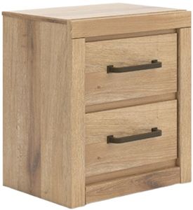 The Brozmont 2 drawer nightstand combines rustic charm with modern function, featuring a warm tan finish, sturdy construction, and smooth gliding drawers for convenient storage. Its clean lines, versatile style, and compact design make it a perfect addition to any bedroom setup.Read More