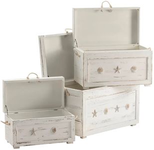 This Crestview Collection Seaside White Shell Set of 3 Trunks is a stack of storage heaven, with softly distressed white finish for any space in your home. Vibrant seashell and starfish accents on each of the three chests might inspire you to plan that ocean vacation.Read More