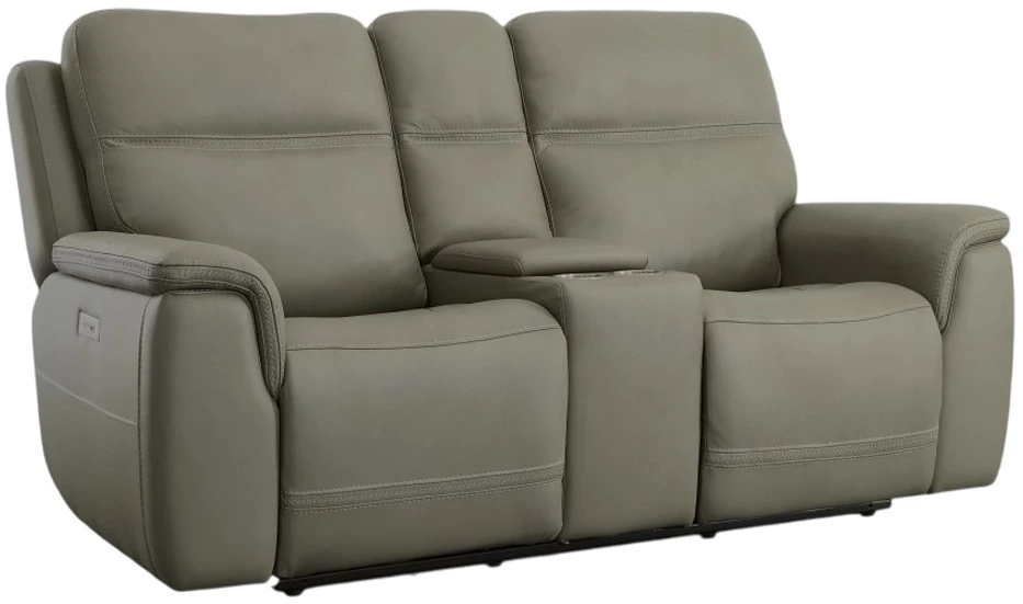 Transform your living space with the Sawyer power reclining loveseat with power headrests and lumbar, a perfect blend of comfort and style. This stunning design features high-quality, gray top grain leather upholstery with unique cross-stitching and a distinct arm silhouette, adding a sophisticated touch to any room.Read More