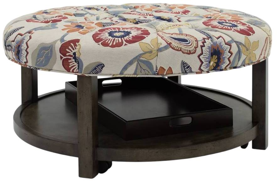 Available in round, square, oval or rectangle, the upholstered cocktail ottomans are available in a choice of more than 650 fabric options with tufted or non-tufted tops and a choice of eight finishes. An additional 15 Premier finishes – hand applied by our artisans – are also available, along with contrasting welt options and a choice of two sizes of nail-head detailing, available in four different finishes for further customization. Melding form with function, each style includes complementary solid wood serving trays for use in entertaining and hidden, locking casters for easy movement. The solid wood trays are crafted to nest on the cocktail ottomans’ bottom shelf for storage when not in use. Strategically placed wooden positioning pins on the bottom shelf help to lock the trays in place.