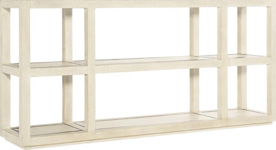 In a serene neutral color palette and crafted in a tactile lacquered burlap finish with a subtle metal inlay with an alluring sparkle, the Cascade table offers cubby-like storage and display areas to clear your clutter and infuse your space with tranquility.Read More