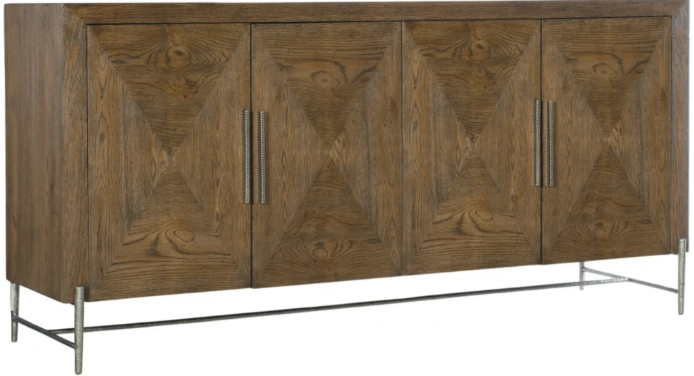 Craftsman style gets a casual modern twist with the Chapman buffet, constructed of white oak veneers with a warm brown sorrel finish revealing the woodgrain and a refined decorative veneer pattern. Custom hardware in a forged pewter finish is complemented by a thinly-scaled metal base and stretcher.Read More
