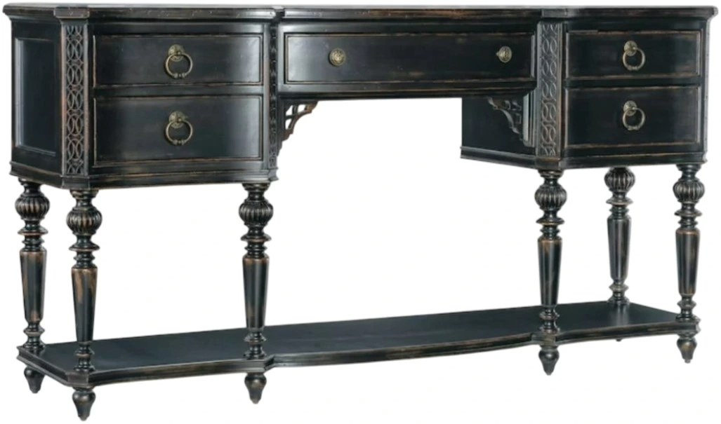 Scroll bracket accents below center drawer