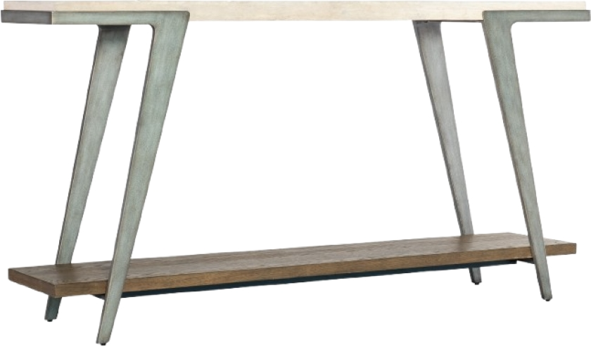 Modern materials meet timeless surfaces in the mixed-media Boomerang console table with an eclectic elegance, the 61-inch-wide table combines a travertine marble top with a metal frame and legs and one wood fixed shelf.Read More