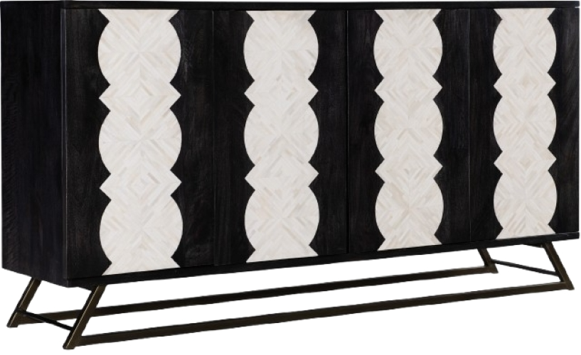 Eclectic, modern and sophisticated, the Moroccan Modern credenza has a natural black wood finish over mango solids with a bone inlay design on the door fronts. An antique gold metal base adds to the mixed media appeal.Read More