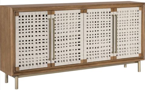 Beige rope door fronts offer texture and warmth on this four-door credenza with open weave panels, oak solids, and champagne-tone hardware. Targeting the next generation of furniture buyers, Hooker Furniture unveils the Commerce and Market brand of accent and occasional pieces.Read More
