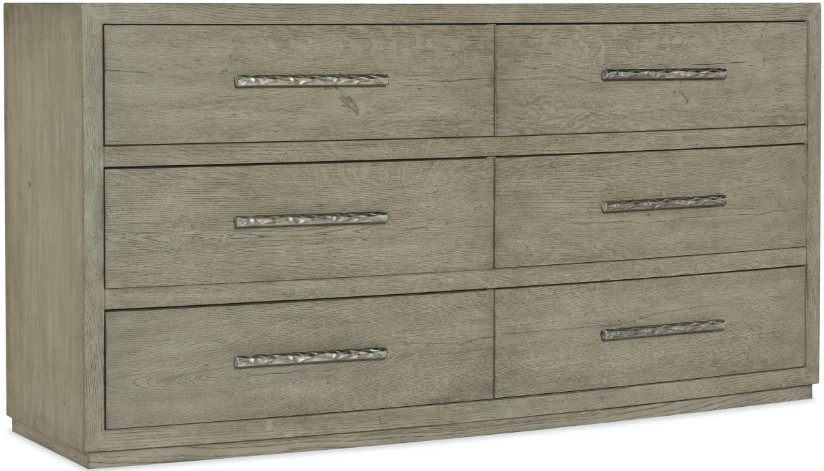 With a rustic weathered finish and clean modern lines, the Chimney Gap dresser has six self-closing drawers, with the top two drawer featuring drop-in felt liners and a jewelry tray. The bottom two drawers are cedar lined. Crafted of oak veneers, the dresser is finished in the soft smoked gray Mink.Read More