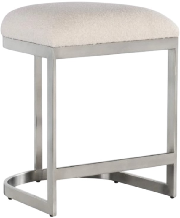 Cozy chic meets sleek sophistication with the modern mood counter stool in a backless design. The tactile and textural boucle fabric in inverness natural on the u-shaped upholstered seat contrasts with a brushed metal base, stretcher and foot rail in a warm pewter finish.Read More