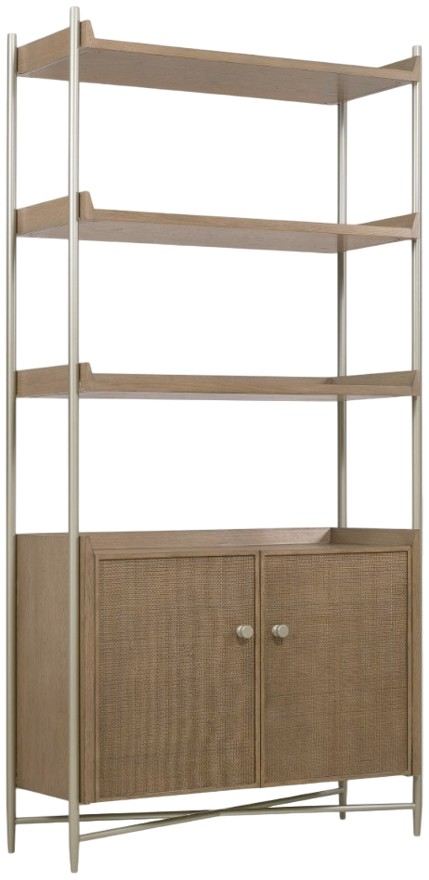 A stylistically versatile piece blending natural textures with a light-and-airy modern aesthetic, the Sonnet bookcase is ideal for storage and display or as a room divider. Crafted of quartered and cathedral-cut white oak veneers in a light earthen-toned finish, it has complementary woven cane door fronts.Read More