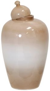 The Ombre Urn showcases a refined two-tone design, blending rich brown and soft white hues with elegant gold accents. Finished with a glossy sheen and topped with a coordinating lid, this decorative urn adds depth, warmth, and sophistication to shelves, consoles, or tabletop displays.