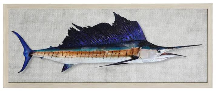 Graceful lines and vibrant hues converge in this stunning sailfish wall art. Crafted with meticulous detail, it captures the dynamic energy of the ocean's fastest predator, adding a touch of aquatic elegance to any space.Read More