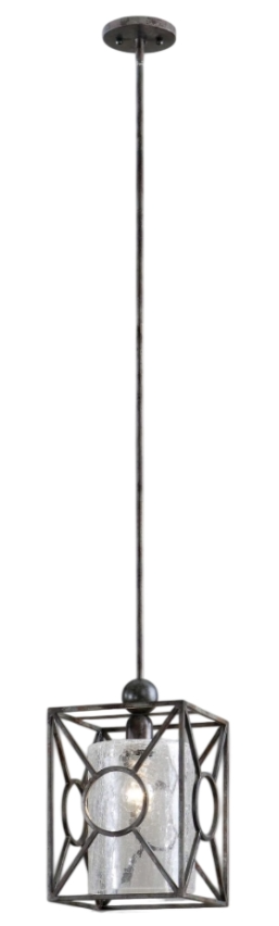Rust black finish with aged gray undertones and a crackled glass cylinder inner shade